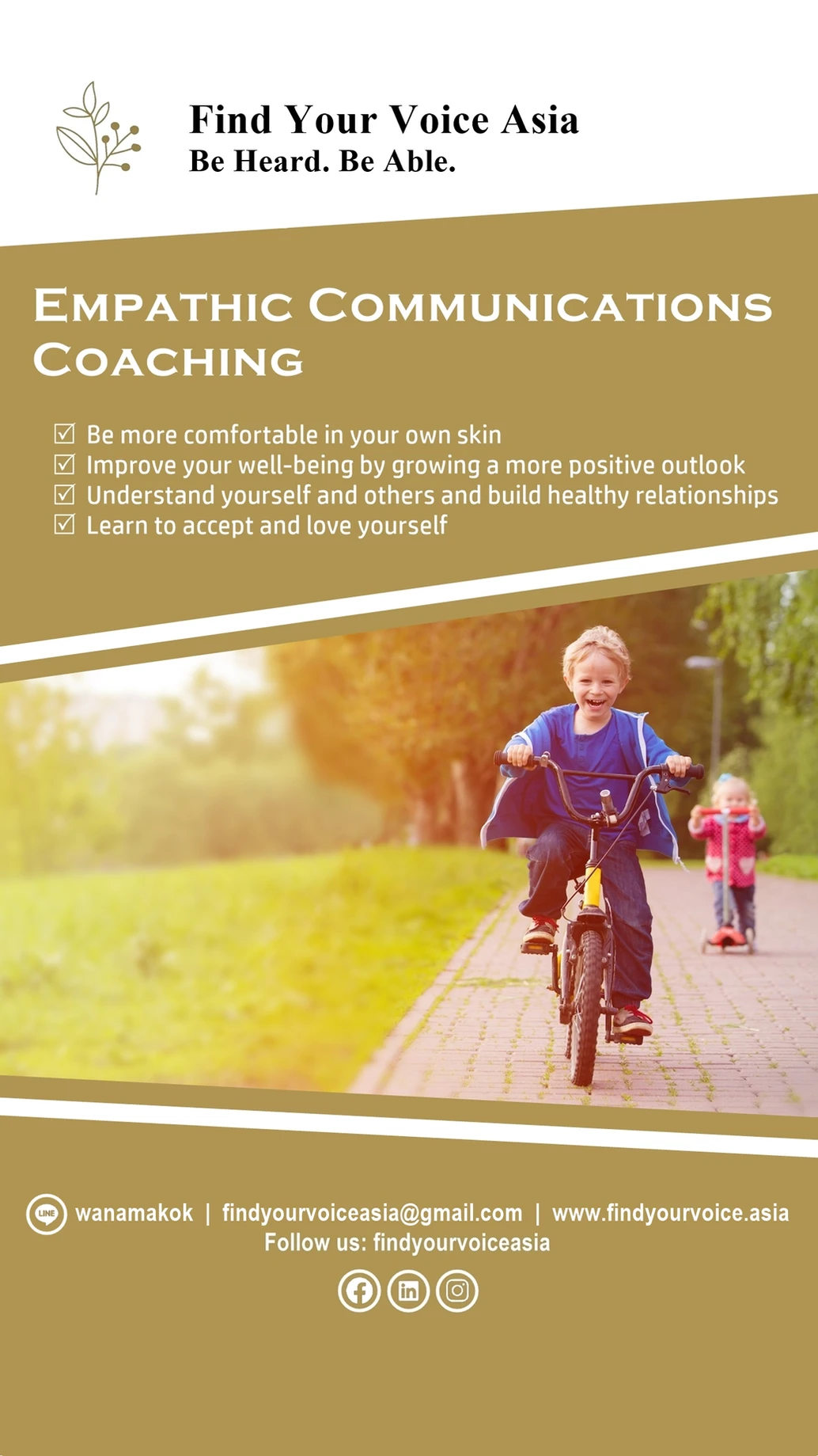 Able (Find Your Voice Asia) helps individuals find their diamond within & grow beyond the ego in order to find peace within & with others.