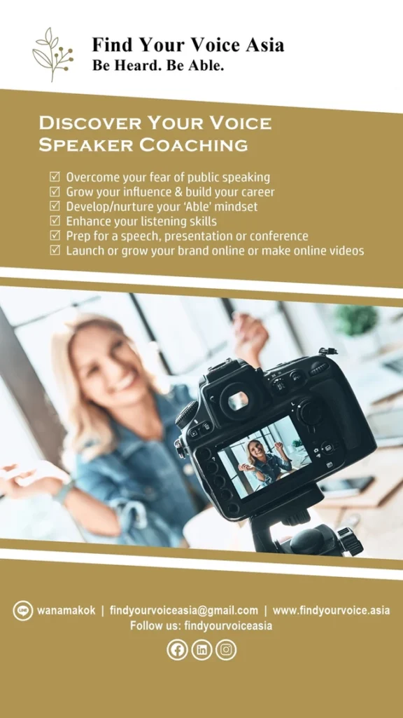 Our current website www.findyourvoice.asia will be switched over to www.findyourvoiceasia.com and we will inform you in our next newsletter when it’s fully LIVE. We are so excited to be able to share this with all of you and to help improve your life through better communication guided by Coach Able and her team.